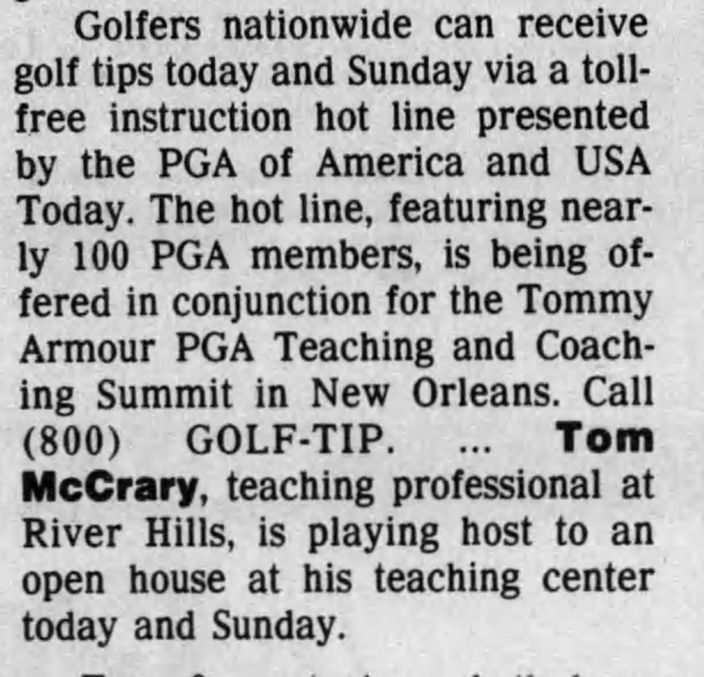 Otra mención data de 1994. En el número del 1 de diciembre de 1994 de «USA Today» hay un artículo que se refiere a (800) GOLF-TIP como la «LÍNEA DIRECTA DE USA TODAY/PGA OF AMERICA».
