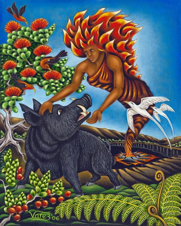 Se dice que Pele, la diosa del volcán, tuvo una vez una relación tumultuosa con Kamapuaa, el dios cerdo, que ella terminó cruelmente desterrándolo a la zona de Kailua de la isla.