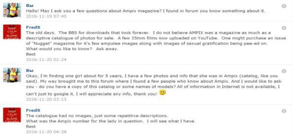 Según un comentario se han encontrado fotos de Tammy (no Barbie definitivamente) en un magazine llamado Ampix, una revista la cual publica fotos sobre amputaciones y enviaba vídeos sobre ello a sus suscriptores.