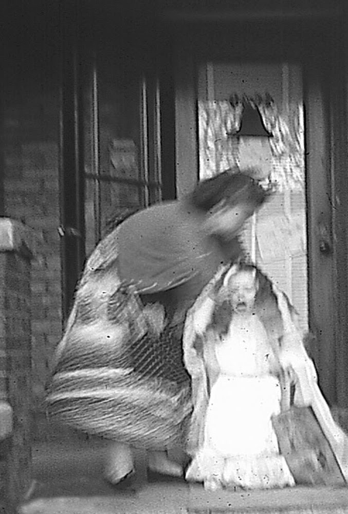 Lily Palmer apenas tenía 4 años cuando experimentó lo que sus médicos más tarde llamarían un «comienzo agudo de alucinaciones sensoriales.» Esta foto, tomada por la madre de Lily, Annette, la noche de Halloween de 1952, capta supuestamente la llegada de su trastorno. Lily y su niñera estaban listas para una ronda de truco o trato, cuando la niña de repente gritó y comenzó a arañar sus ojos.