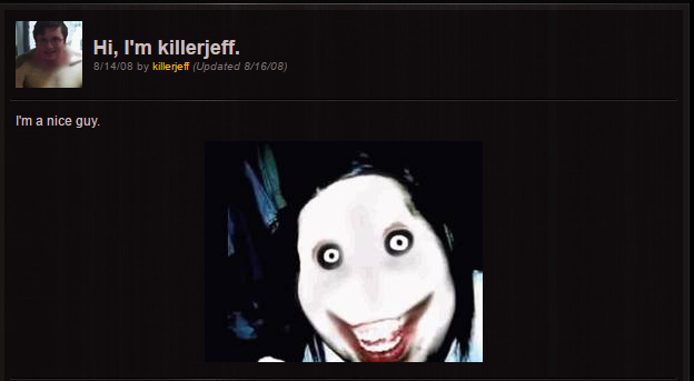 Conocido como Jeff, la foto muestra un rostro descolorido y una sonrisa maníaca. Desde octubre de 2008, la foto ha actuado como imagen de diferentes textos de creepypastas de Internet de «historias de terror cortas y leyendas urbanas que se comparten a través de tablones de anuncios o de correo electrónico» describe Know Your Meme.