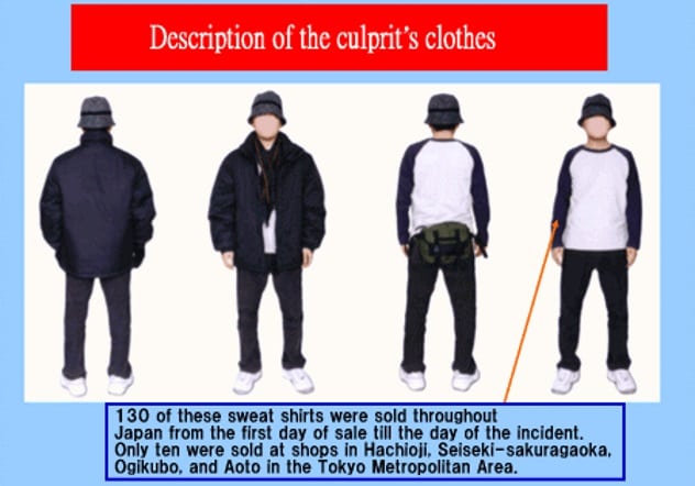 Se determinó, también, que el asesino había comido judías verdes y semillas de sésamo el día anterior después de analizar las heces que dejó en el baño. Determinaron que la ropa y el cuchillo de sashimi que dejó el asesino habían sido comprados en la prefectura de Kanagawa. La policía también se enteró de que solo se fabricaron y vendieron 130 unidades del suéter del asesino, pero solo han podido localizar a doce de las personas que lo compraron. También se encontraron trazas de arena dentro de la riñonera que el perpetrador dejó en la escena, que después del análisis se determinó que provenía del desierto de Nevada, más precisamente del área de la Base de la Fuerza Aérea Edwards en California.