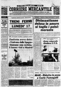 Poco después de la medianoche del 6 de diciembre de 1978, Pier Zanfretta, un guarda de seguridad, estaba de servicio en Torriglia, un pueblo cerca de Génova. Era una noche oscura y sin luna. También hacía frío y la nieve había caído durante el día, de modo que había una película peligrosa de hielo en las carreteras. Zanfretta estaba cerca de la casa de campo deshabitada de un cliente (llamado «Nuestro Hogar» por el propietario, el Dr. Ettore Righi), en el área de Marzano, su coche patrulla, un Fiat 126, misteriosamente se detuvo en seco.