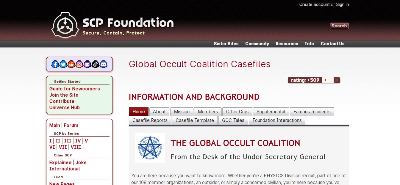 La Coalición Oculta Global fue un Grupo de Interés creado por Kain Pathos Crow en los primeros días de la wiki de la Fundación SCP. Inspirado en un creepypasta sobre cómo el Ejército Rojo Soviético mató a Dios en la década de 1950, postuló la existencia de una fuerza separada, pero igualmente poderosa, en el mundo paranormal. Si la Fundación SCP se dedicara a encontrar, capturar y contener objetos paranormales, la Coalición se dedicaría a un enfoque mucho más directo y diferente: la destrucción total de lo paranormal.