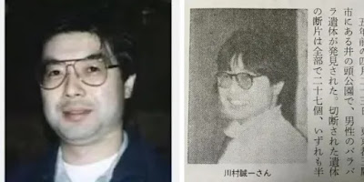 La víctima fue identificada como Seiichi Kawamura, un arquitecto de 35 años que vivía cerca del parque. Lo vieron por última vez con vida el 21 de abril de 1994, después de cenar con su familia y luego ir a un bar de karaoke con un viejo compañero de trabajo. Se fue con su amigo alrededor de las 11 p.m. y nunca llegó a casa. Las partes del cuerpo que encontraron incluían dos manos, dos pies, un hombro y otros fragmentos, todos cortados en trozos precisos de 20 centímetros (unos 8 pulgadas). La cabeza, el torso, el pecho y los genitales nunca se encontraron, lo que hace que este caso sea aún más espeluznante.