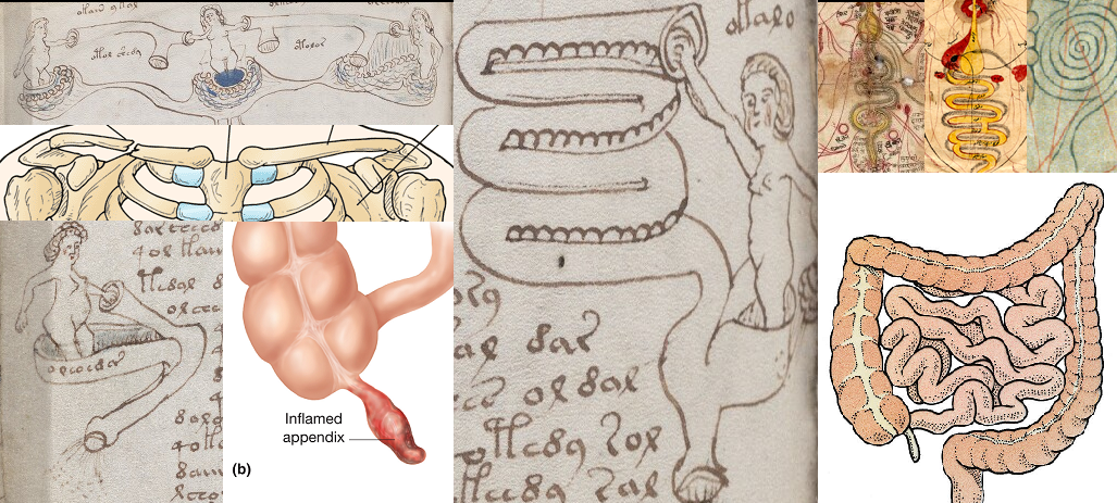 Los cuerpos celestes ilustrados en la sección astronómica no pueden ser identificados y probablemente son sólo producto de la imaginación. Los peinados y la ropa de las personas representadas en el libro, así como el estilo de las ilustraciones fueron generalmente fechados para el período desde 1450 hasta 1520, que resultó ser razonablemente compatible con la datación por radiocarbono (entre 1404 y 1438). En la mayoría de los casos, las personas representadas son mujeres desnudas en grandes tinas llenas de agua.
