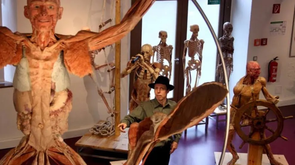 Durante un tiempo tuvo una exposición llamada ‘Los Mundos del Cuerpo’, con cuerpos plastinados, la cuál se nutrió del comercio con las cárceles chinas, tal y como reveló un inventario interno de su empresa, en su planta de Dalian (China).