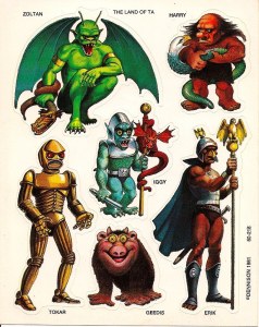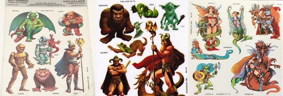 En dicha ilustración podíamos ver a Geedis, entre otros seres propios de una película de fantasía. Una búsqueda en Google arrojó más de estas plantillas de personajes, que resultan ser pegatinas de 1981.