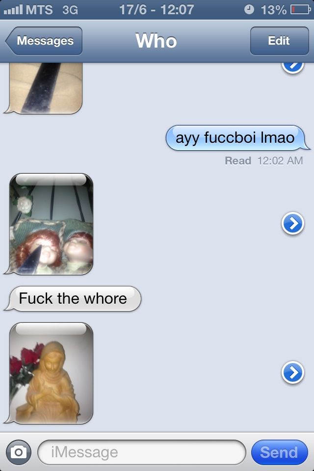 ¿Terrorífico? Para muchos usuarios sí. Pero lo peor vino cuando el tipo que aseguró que había recibido el mensaje «No» a su teléfono siguió recibiendo más mensajes, solo imágenes sin mucha relación, como un pavo real, un cuchillo, cabezas de muñeca o la imagen de la virgen.