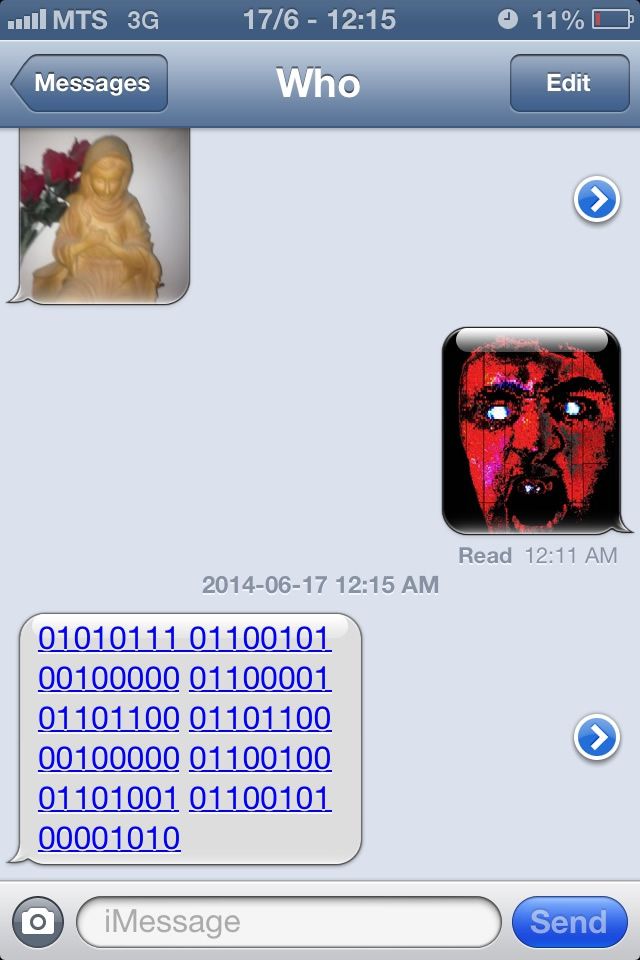 Aunque muchos le acusaron de ser un «bromista» o el propio OP (Esto no era así, ya que provenían de una IP diferente) le animaron a enviar a dicho número la imagen del rostro rojo. Obviamente funcionó y recibió un mensaje en binario.
