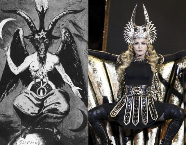 - Madonna: Según los teóricos de la conspiración, cuando Madonna hizo una actuación en la NFL no sólo fue mala, sino que fue activamente diabólica. Por supuesto, esto llevó a la Iglesia de Satanás a decir: «El uso de los cascos con cuernos y su desaparición en las regiones inferiores a la conclusión fueron probablemente golpes de teatro sin un significado más profundo».