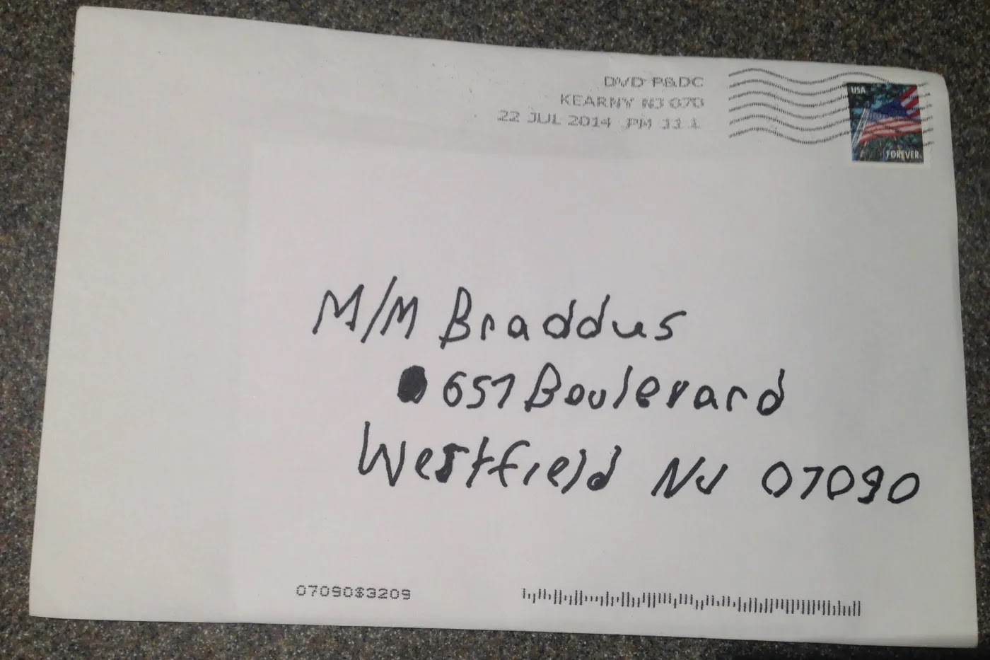 Las cartas sí sugerían proximidad, ya que se procesaban en Kearny, el centro de distribución del Servicio Postal de Estados Unidos en el norte de Nueva Jersey. La primera carta tenía matasellos del 4 de junio, anterior al anuncio público de la venta —ya que los Woods no habían colocado un cartel de «se vende»— y apenas un día después de la llegada de los contratistas.