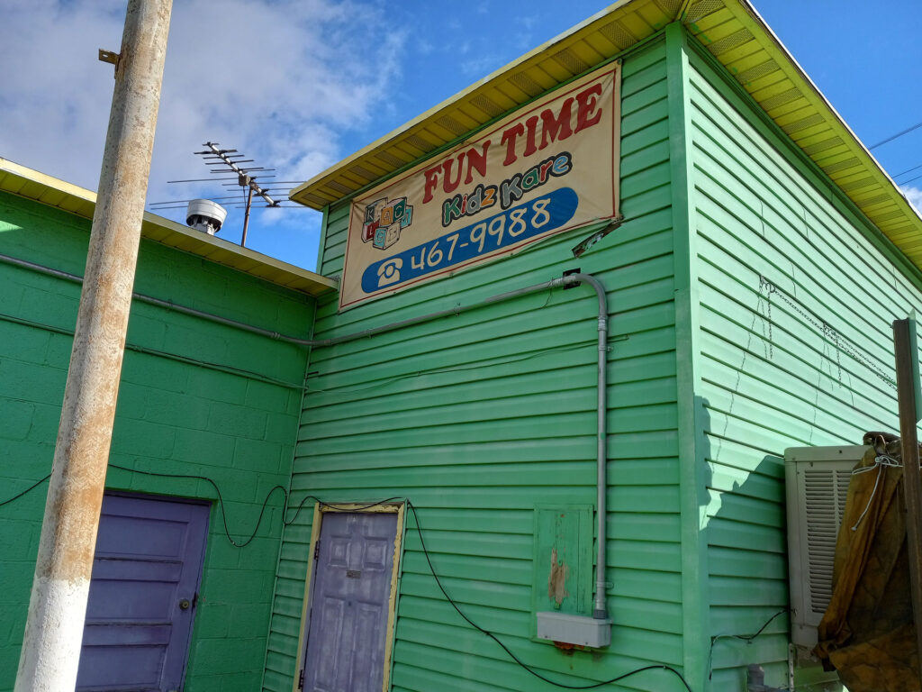 En Salt Lake City hay algo imposible de ignorar que llamó la atención de mucha gente en la intersección de 1300 South y 300 East: un edificio verde fosforescente con puertas moradas y molduras amarillas. Las ventanas, cubiertas con cartones decorados con dibujos infantiles, parecen arrancadas de viejos cuadernos para colorear. Detrás, un pequeño parque infantil desierto que, en una noche invernal, podría parecer el escenario de un videojuego de terror.