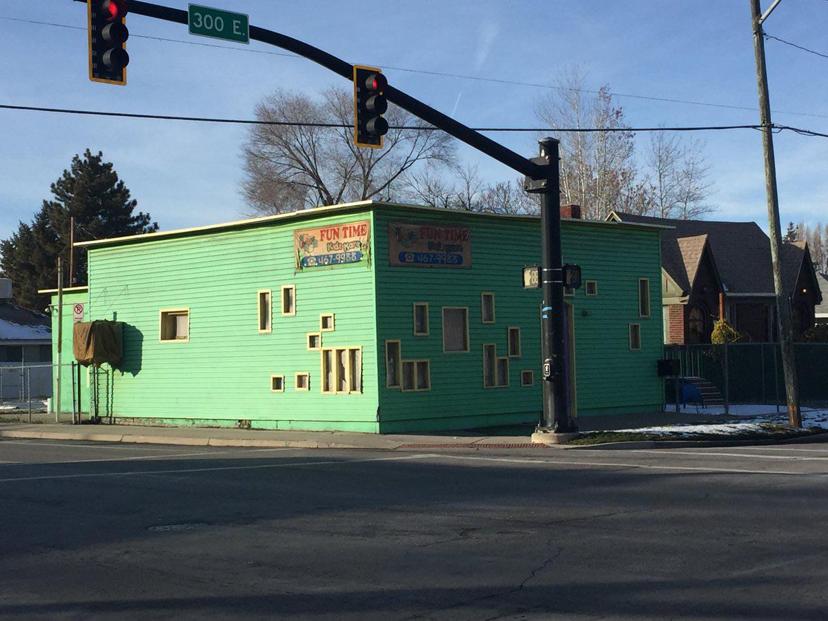 En Salt Lake City hay algo imposible de ignorar que llamó la atención de mucha gente en la intersección de 1300 South y 300 East: un edificio verde fosforescente con puertas moradas y molduras amarillas. Las ventanas, cubiertas con cartones decorados con dibujos infantiles, parecen arrancadas de viejos cuadernos para colorear. Detrás, un pequeño parque infantil desierto que, en una noche invernal, podría parecer el escenario de un videojuego de terror.