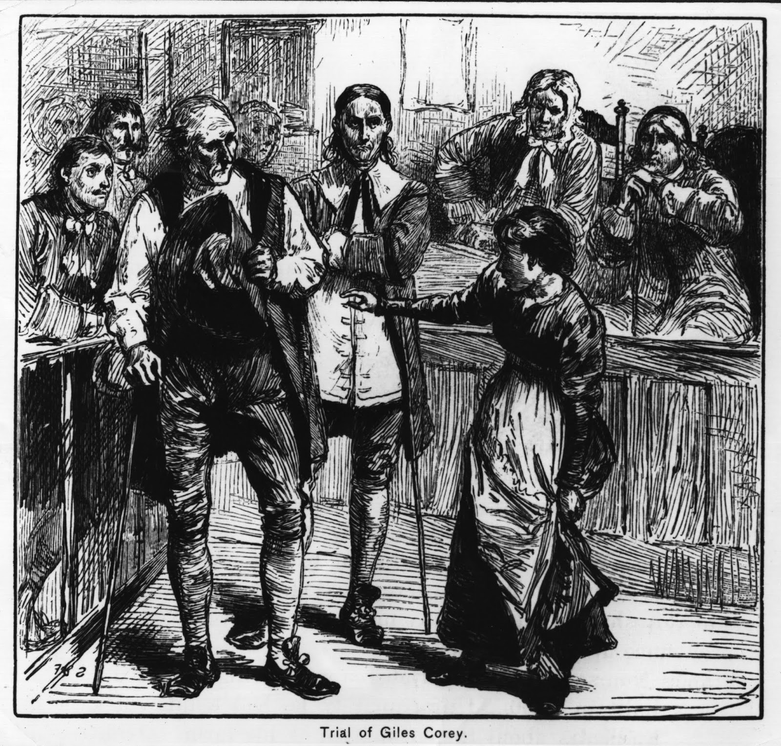 Por su parte, Corey comenzó a negarse a hablar en absoluto durante los juicios, temiendo incriminarse de alguna manera, eligiendo permanecer mudo durante la mayor parte del tiempo, sin declararse culpable o inocente. Esto puede haber demostrado ser su ruina, ya que en ese momento una negativa a alegar era equivalente a admitir la culpa. Con este fin, se trajo al sheriff Corwin para comenzar el proceso de tortura, que consistía en desnudar a Corey, tumbarlo sobre una mesa y luego colocar gradualmente piedras más y más pesadas sobre él (un método también llamado «la tortuga»). Esto tenía la intención de romper gradualmente la voluntad del destinatario e instar a una confesión para detener el dolor, pero Corey fue completamente desafiante. Se dice que instó a los verdugos a aumentar el peso que lo estaba aplastando. Es afirmado que durante su interrogatorio sólo repitió las palabras «Más peso«, cada vez que se le pedía que declarase si era culpable o no.
