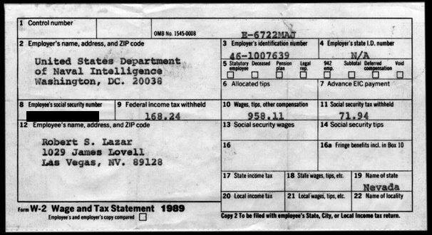 Otro caso relacionado con el Área 51 es el de Bob Lazar. En 1989, Lazar afirmó en una entrevista anónima ser un físico que trabajó para el gobierno de EE. UU. estudiando tecnología alienígena en un sitio llamado S-4. Aseguró que trabajaba con ovnis que tenían pequeños asientos alienígenas y estaban hechos con un material llamado elemento 115.