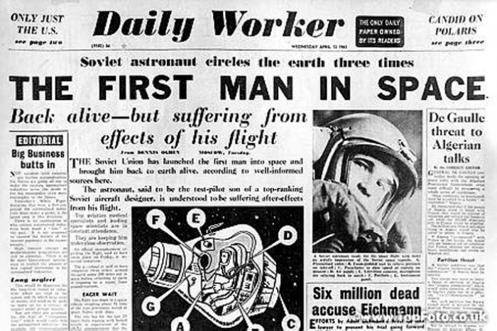 El miércoles 12 de abril de 1961, la Unión Soviética anunció que el cosmonauta Yuri Gagarin se había convertido en el primer hombre en viajar al espacio exterior. Durante la noche, el astronauta de 27 años de edad se convirtió en un héroe nacional y el hombre más famoso del mundo, su logro fue reconocido en los titulares de primera página desde Washington hasta Pekín. Para los soviéticos, esta fue una espectacular validación del sistema comunista. Habían derrotado a los estadounidenses capitalistas en un hito espacial crucial y demostraron su supremacía tecnológica al mundo.