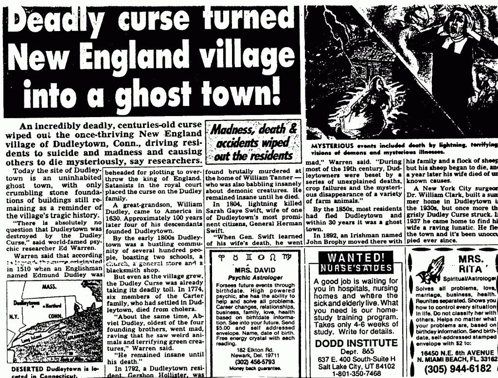 A pesar de todas estas cosas, la ciudad prosperó durante un tiempo, y pese a los signos externos de la prosperidad sin embargo, no hubo muertes extrañas y extraños sucesos en Dudleytown desde el principio. Algunos historiadores han tratado de restar importancia a los acontecimientos inusuales en sus últimos años.