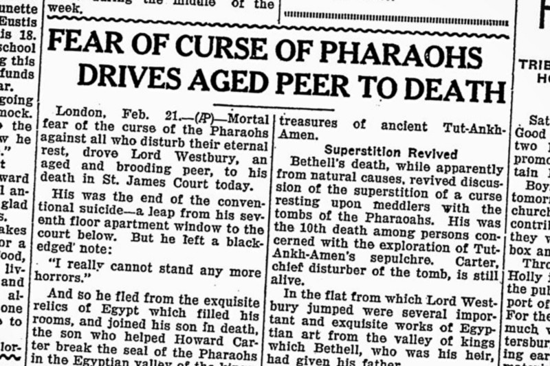 A principio de la década de los 30, los periódicos atribuían hasta treinta muertes a la maldición del faraón, se llegó a decir que Carter había muerto, ya que encontraron una esquela de alguien con su nombre en un periódico, pero seguía vivo. Aunque muchas de ellas eran exageraciones, la casualidad parecía insuficiente para explicar las demás.