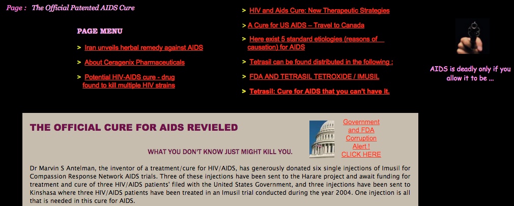 Durante los últimos años comenzó a circular por internet un mensaje que indica que al introducir en la búsqueda de Google el número 5676977 se encontraría una posible cura para el VIH. Ese número lleva en el buscador a una patente solicitada al Departamento de Patentes de Estados Unidos por el doctor Marvin S. Antelman el 14 de julio de 1997, la cual no está vigente desde el 2009 «por no mantener los pagos ni presentar datos».