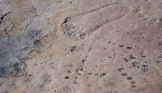 El lugar es una losa de piedra arenisca que tiene una impresión de un pie derecho humano de gran tamaño con 6 dedos de los pies rodeados por impresiones más pequeñas de una variedad de animales.