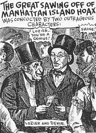 El aserrado fuera de la isla de Manhattan es una vieja historia la ciudad de Nueva York, que es en gran parte sin verificar. En él se describe una broma presuntamente perpetrada en 1824, por un carpintero jubilado llamado Lozier. Según la historia, en la década de 1820 un rumor comenzó a circular entre los comerciantes de la ciudad que el peso del casco urbano estaba causando el sur de la isla de Manhattan a hundirse. Se creía que mediante la reducción de la isla se estabilizaría, y que la parte delgada de la isla podría ser condenada. Lozier no se presentó, pero se escondió en Brooklyn y no regresó durante meses.