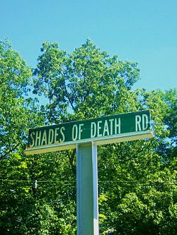 Shades of Death Road (literalmente Camino de las sombras de la muerte) es un camino estrecho y sinuoso a través de un bosque denso con un nombre absolutamente espeluznante del que se dice que habitan espíritus, además de haber un lago espeluznante con una cabaña abandonada espeluznante, numerosos asesinatos incluyendo decapitaciones y una gran cantidad de animales salvajes peligrosos.