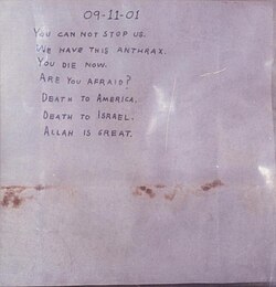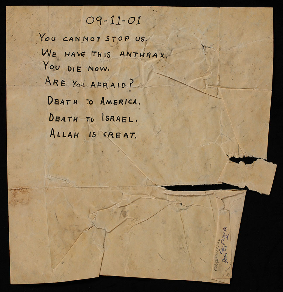 El 18 de septiembre de 2001, exactamente una semana después de los ya conocidos ataques del 11 de septiembre, que destruyeron el World Trade Center en la ciudad de Nueva York, dañaron el Pentágono y mataron a tantas personas en el vuelo 91 de United, se enviaron cinco cartas que contenían ántrax.