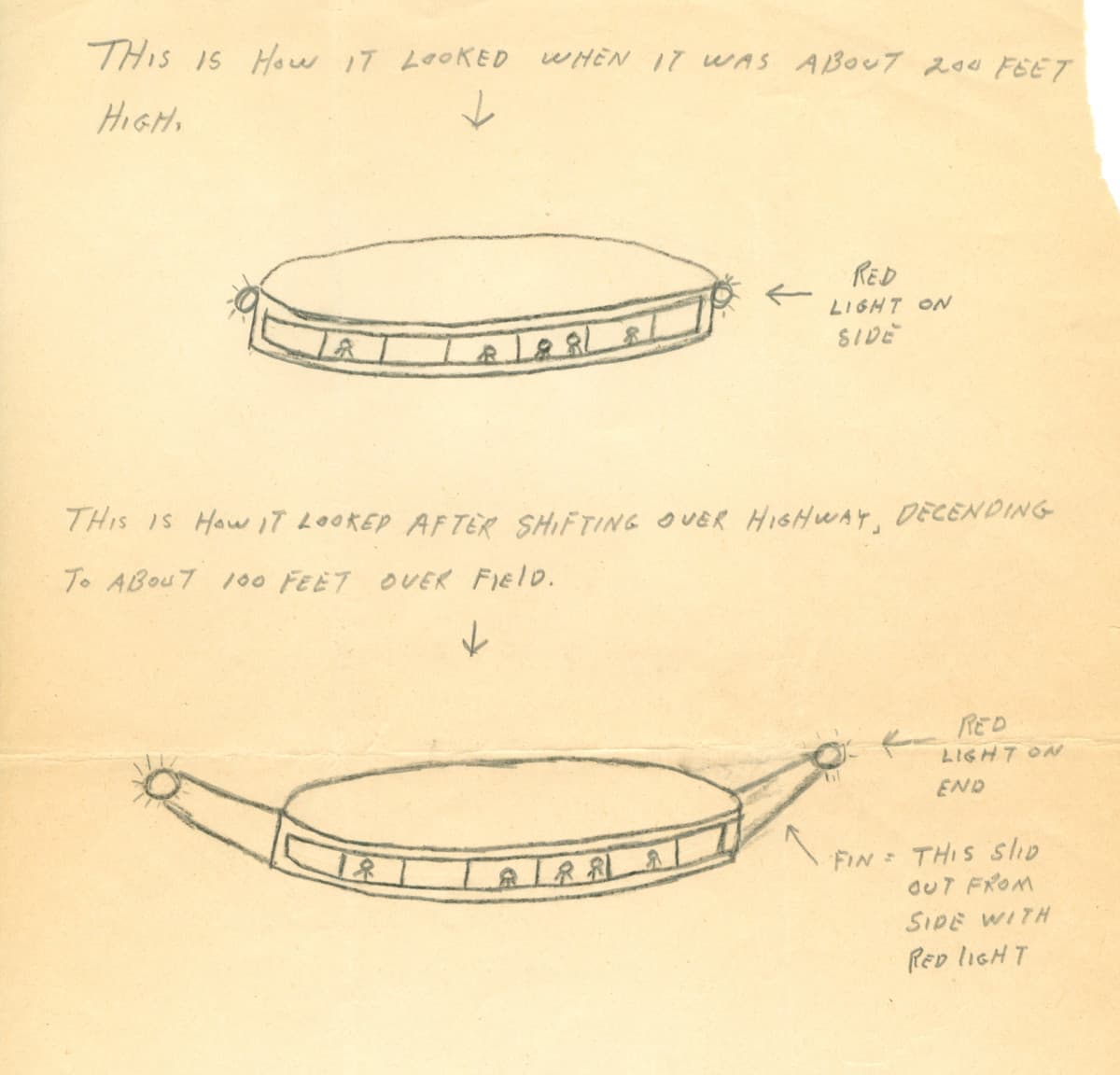 La pareja afirmó que vieron criaturas humanoides bípedas en la ventana de una gran nave espacial que aterrizó en un campo, después de lo cual no tuvieron ningún recuerdo de las próximas dos horas. Betty miró a través de los binoculares y vio una nave giratoria con una «forma extraña» y luces parpadeantes. Barney, al mirar, vio la nave descender rápidamente y acercarse, obligándolos a detenerse. Barney se bajó y se acercó, pero corrió histéricamente de vuelta al auto al ver hasta 11 seres que no parecían humanos mirándolo a través de las ventanas. Según dicen, sintieron un continuo hormigueo en el cuerpo. Esto fue cuando las cosas se pusieron muy turbias para ellos.