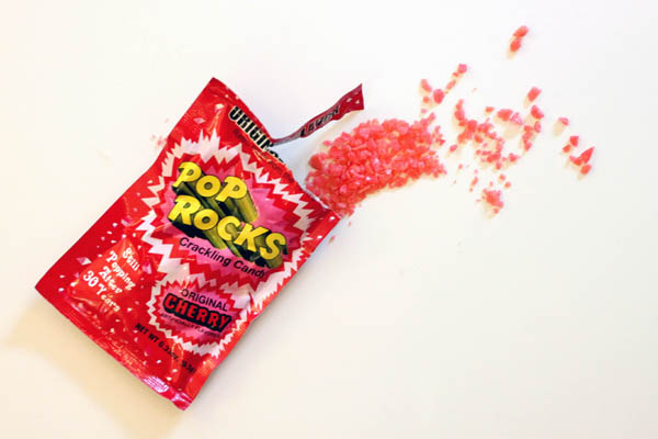 Inventado en 1956 por el científico investigador de General Foods, William A. Mitchell y presentado al público en general en 1975, Pop Rocks (conocidos como Peta Zetas) era un caramelo carbonatado hecho de azúcar, lactosa, jarabe de maíz y saborizante. Estas pepitas con sabor a fruta liberaban pequeñas cantidades de carbonatación al ingerirlas, lo que causaba una leve sensación de «explosión» en la boca, y daba como resultado un ruido satisfactorio que los niños adoraban. A pesar de que la confección había sido probada extensamente y se había encontrado segura, el dulce combustible aún alarmaba a los residentes de Seattle. La Administración de Alimentos y Medicamentos (FDA, por sus siglas en inglés) estableció una línea telefónica directa para asegurar a los padres ansiosos que los caramelos no causan que los niños se ahoguen.