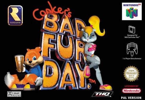 El desarrollo de Conker’s Bad Fur Day para Nintendo 64 se tomó 4 años. En principio, el juego iba a ser orientado para una audiencia infantil, pero fue rediseñado orientándose a audiencias de edad madura. El juego cuenta con violencia gráfica, temas sexuales, palabras obscenas, humor escatológico, y parodias de varias películas como «La naranja mecánica».