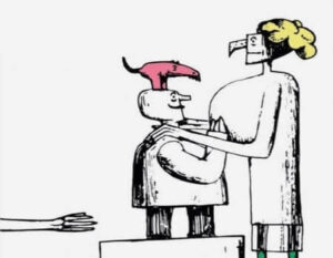No hay humanos. El simbolismo es evidente: cortar los hilos implica libertad, pero también muerte.