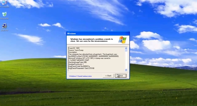 Cuando el usuario ejecuta Gruel, el programa muestra un mensaje de error falso que el usuario no puede mover o cerrar. Cuando el usuario presiona ‘Enviar error’ en el cuadro de diálogo, el gusano se envía en masa a todos los contactos del usuario. Cuando se presiona ‘Enviar y cerrar’, finaliza el proceso Explorer.exe, abre varias ventanas de configuración predeterminadas, abre la bandeja de CD-ROM y muestra un mensaje que no se puede cerrar, que contiene dos botones, «Reintentar» y «Cancelar». El texto del mensaje de error es el siguiente: