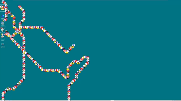 El 22 de diciembre, el virus se manifiesta a través de curiosos efectos de video: muestra los iconos estándar de escritorio de Windows de la siguiente manera: cuadro de mensaje, error crítico, pregunta, advertencia, información y bandera de Windows, y en posiciones y patrones aleatorios. El virus puede ser detenido por «Finalizar tarea» en el Administrador de tareas, así que se trata más bien de una broma algo molesta. Para eliminar los mensajes de Windows y los íconos de advertencia, simplemente maximice una ventana sobre los íconos. Esto borrará la pantalla.