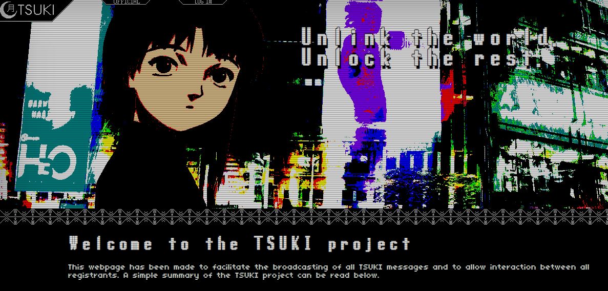 TSUKI Project es un juego de realidad alternativa (ARG) basado en el anime ‘Serial Experiments Lain’ que invita a los lectores a registrarse en su web antes de que toda la vida sea «purgada», lo que les permite vivir en un reino utopista del ciberespacio después de la muerte. Lo único es que para alcanzar ese ciberespacio utópico debían morir antes…