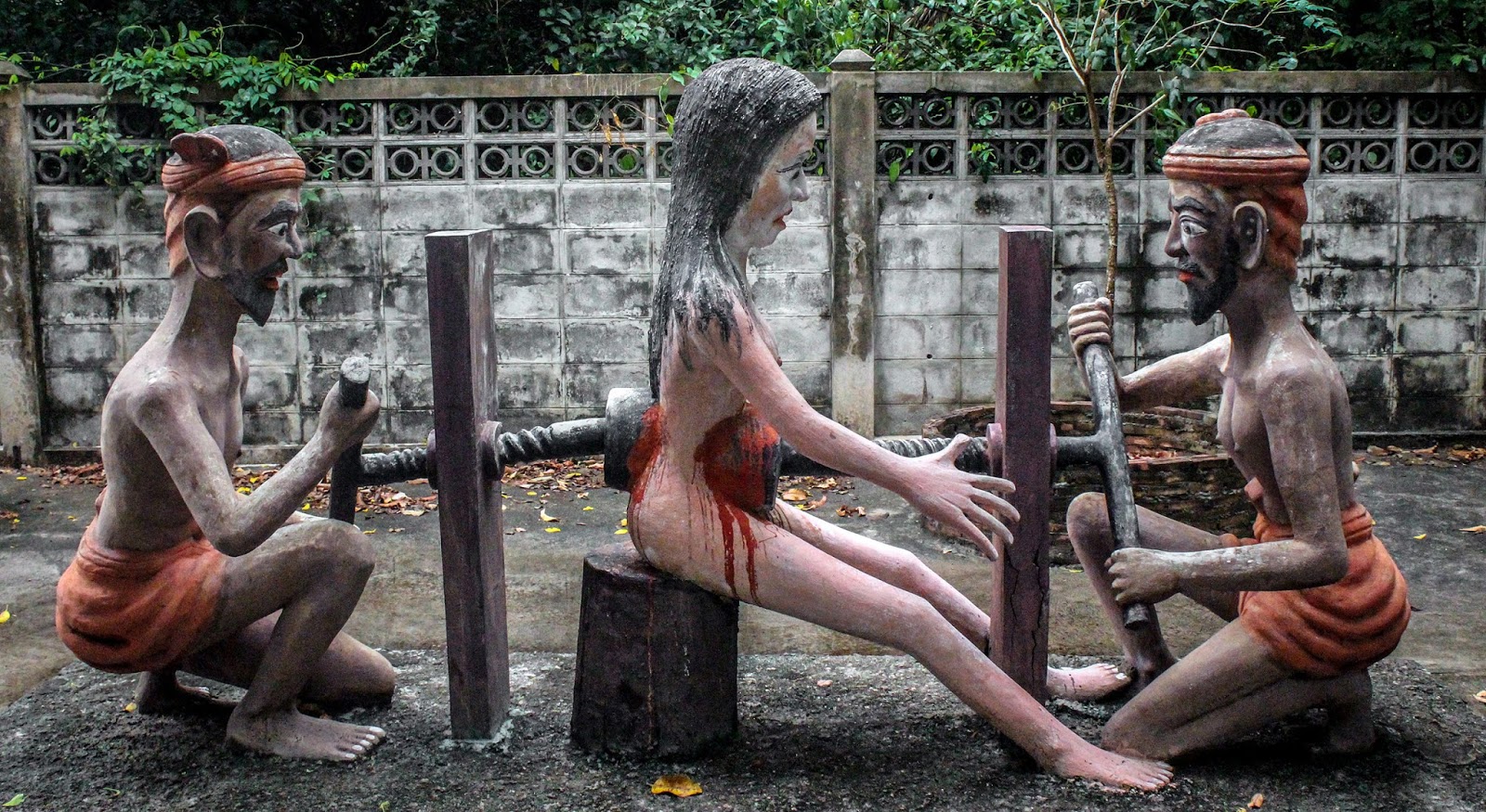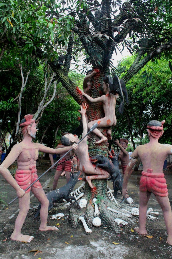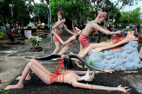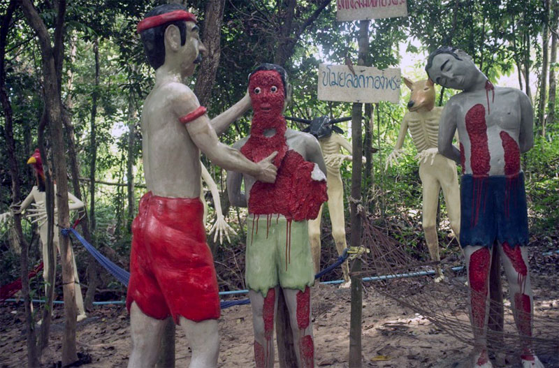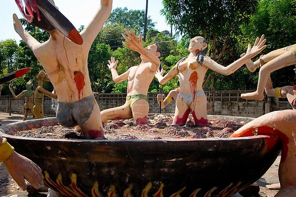 Escondido en un camino cubierto de maleza, en un pueblo no muy lejos de Bangkok, se encuentra un curioso museo conocido por muchos como el «El parque del infierno de Tailandia ‘, Wang Saen Suk Hell Park. Construido al lado de un templo local, el Wang Saen Suk Hell da vida a las enseñanzas budistas sobre los tormentos de los bajos fondos, en una serie de escenas cada vez más horripilantes.