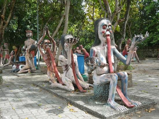 El parque, que es un templo, fue construido por los monjes hace mas de 20 años quienes empezaron a esculpir y fabricar todas las estatuas que forman el jardin de los infiernos. La finalidad de todo es muy simple, mostrar a todo el mundo que te ocurrirá si no realizas buenas acciones durante tu vida, razón por la cual en Tailandia muchas familias lo visitan con sus hijos, para demostrarles precisamente el horror del «pecado».