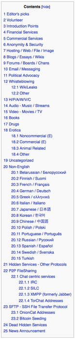 En Hidden Wiki por ejemplo no cualquiera puede añadir enlaces, el vandalismo frecuente ha conseguido que solo unas pocas webs elegidas por el administrador hayan quedado en la lista. Para el resto de links tenemos wikis como la HDWiki o la Uncensored Hidden Wiki.