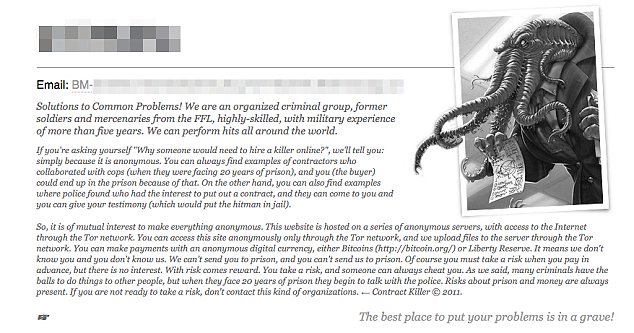 En «C’thulhu» se ofrecen asesinatos por encargo desde 20.000 dólares, siempre en prepago. Hasta ahora nadie los ha deslegitimado, así que es muy posible que sea una estafa. En la tabla de precios de C’thulhu viene detallado por ejemplo cuánto costaría que pareciese un accidente: serían 75.000 dólares para una persona del montón y 300.000 dólares para un alto cargo, se incluyen menores de edad y diferentes formas de matar, como «violación» o «bomba». Con posibilidad de dejarlos paralíticos por la mitad de precio. Actualmente existe más de una web para contratar sicarios.